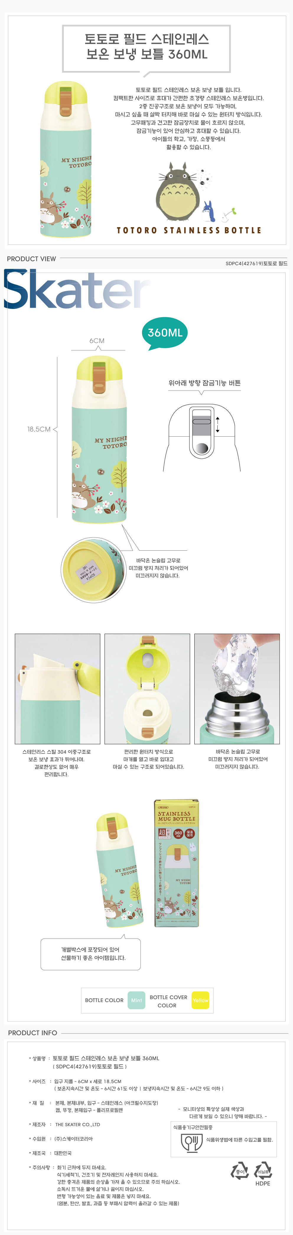 토토로 필드 스테인레스 보온보냉 보틀 360ML