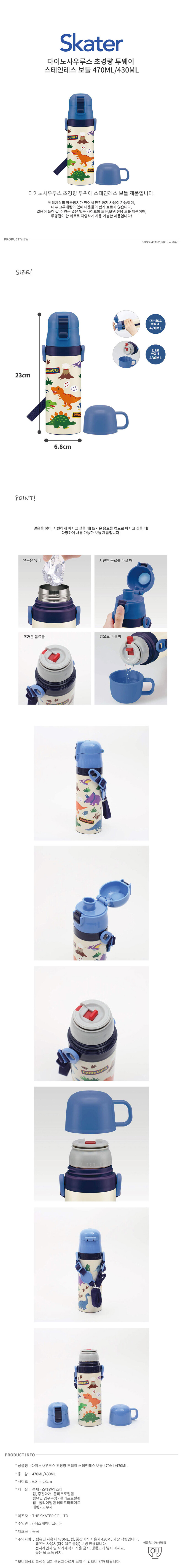 다이노사우루스 초경량 투웨이 스테인레스 보틀 470ML/430ML