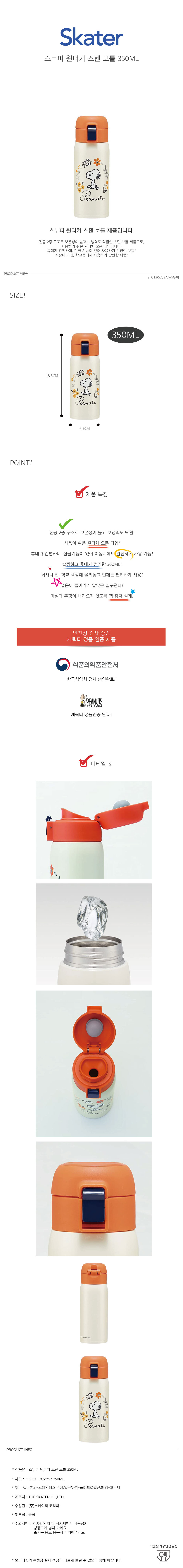 스누피 원터치 스텐 보틀 350ML